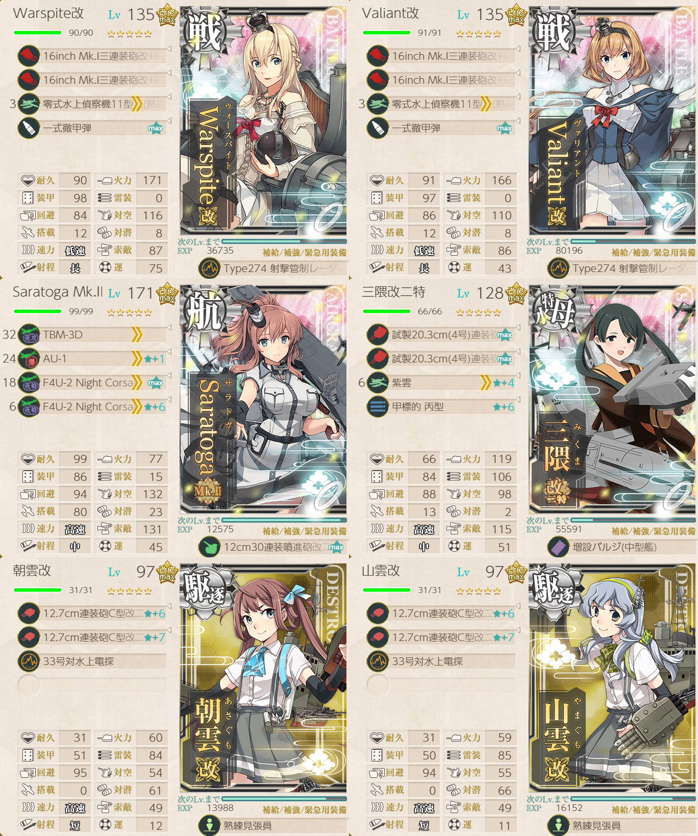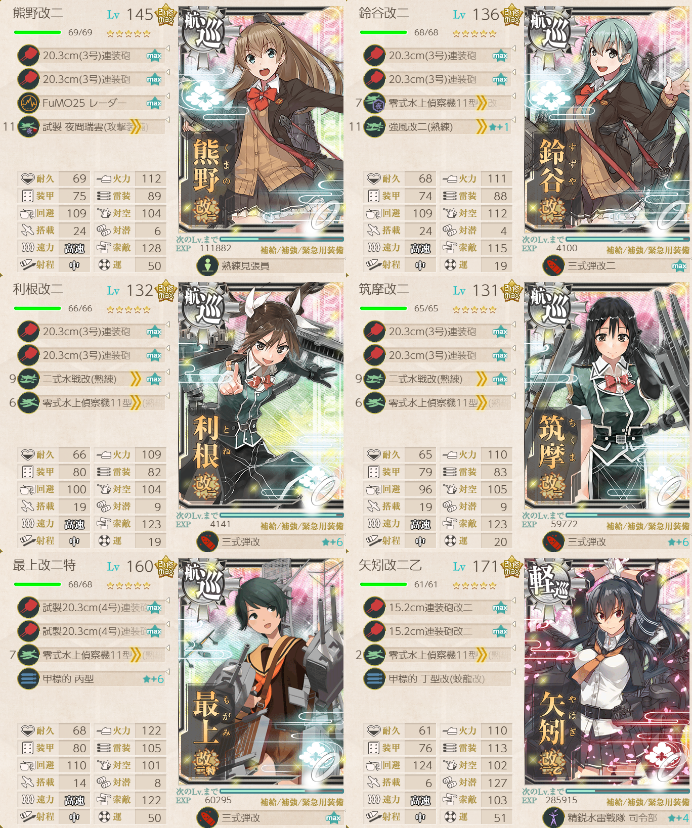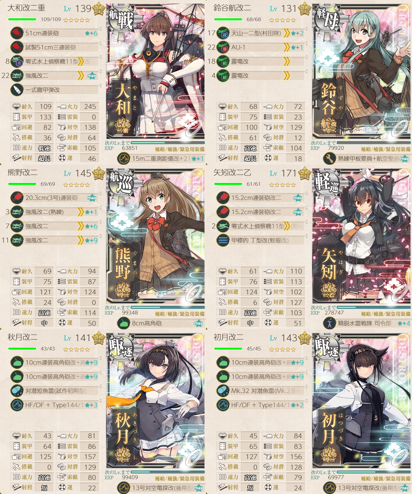性能は初月改二とほぼ同じ。初月同様、様々な海域での活躍が見込める。