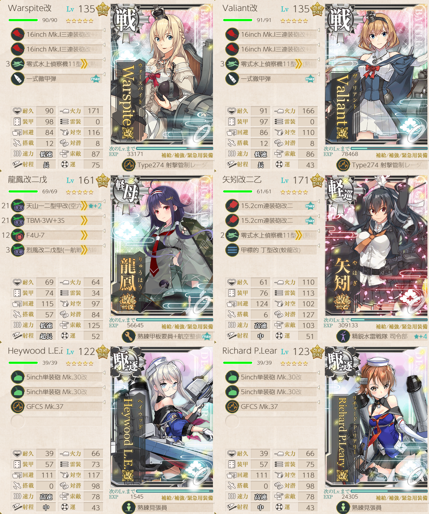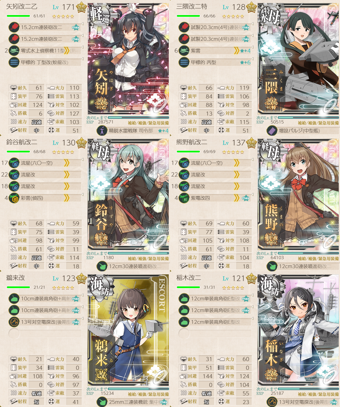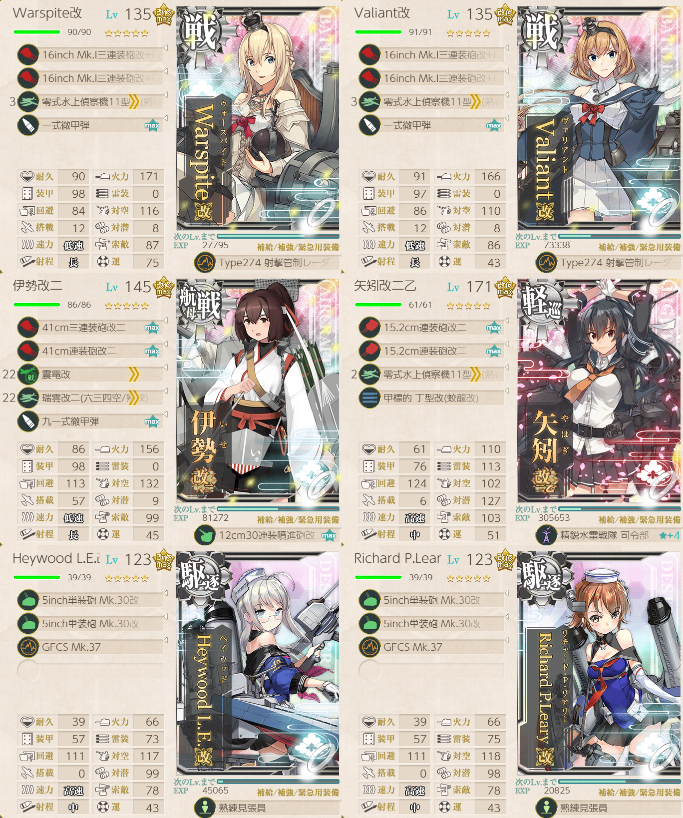 性能は初月改二とほぼ同じ。初月同様、様々な海域での活躍が見込める。