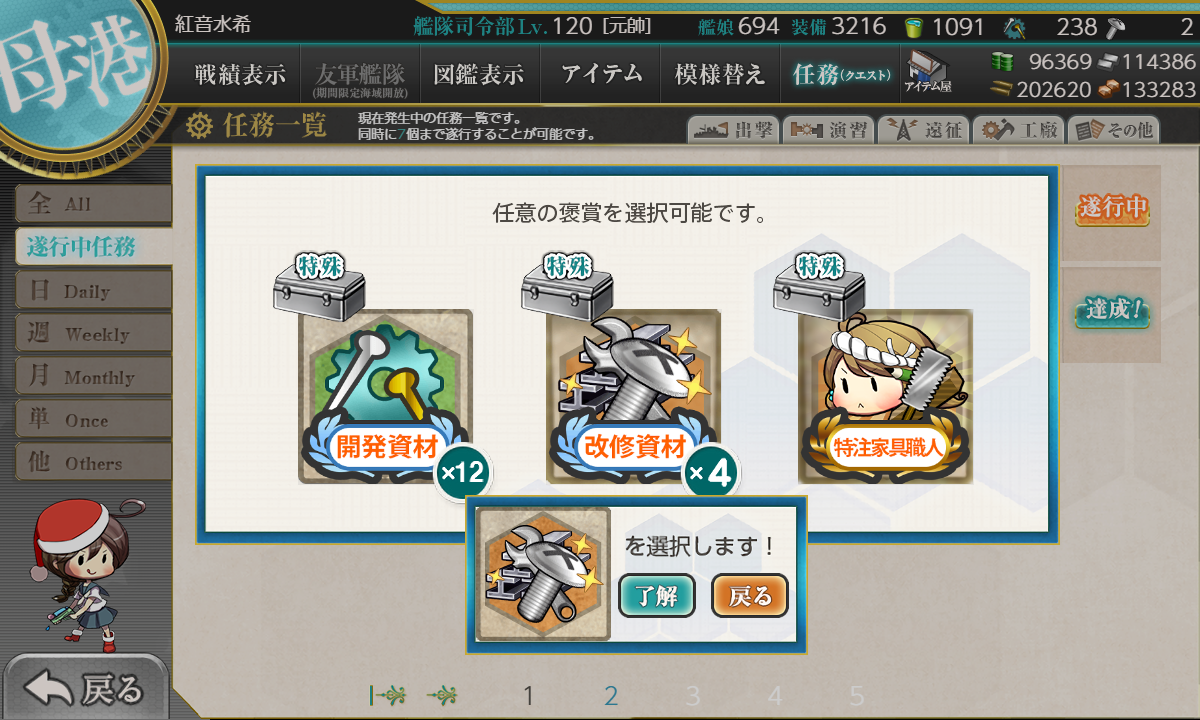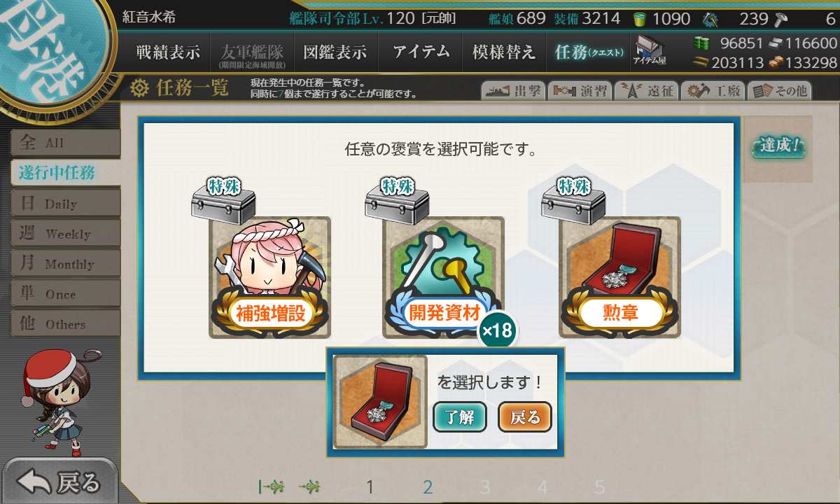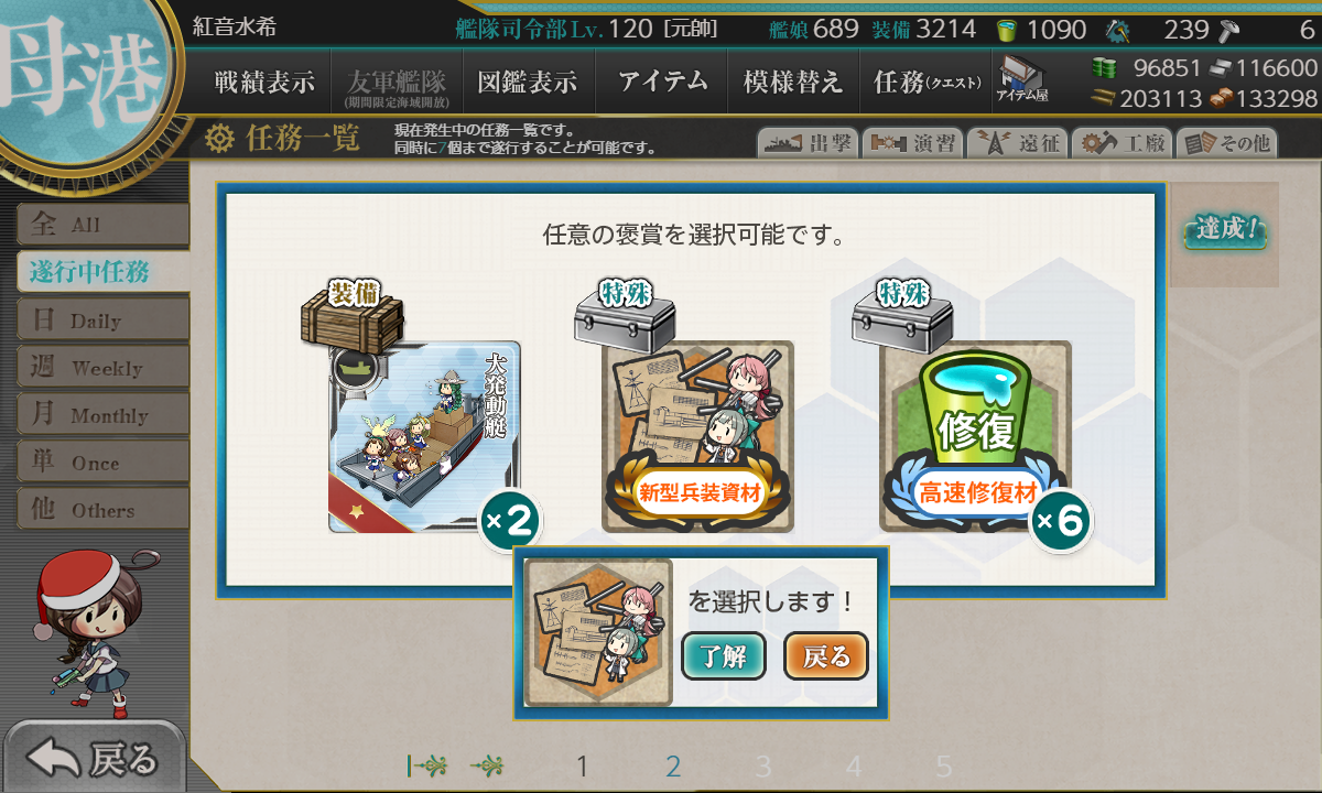 2つ目のXmas限定任務。こちらも特に難しい海域はないので適当に。